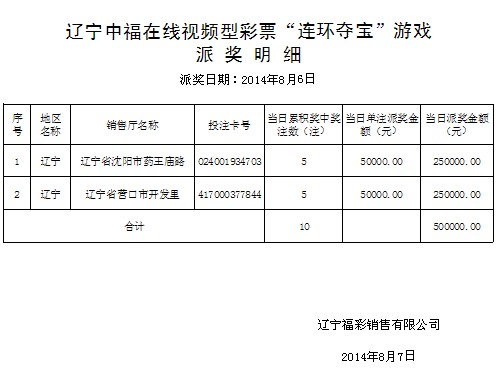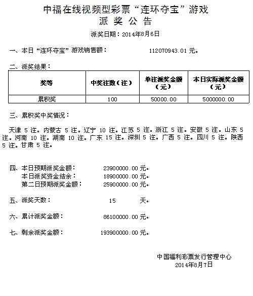 中福在线“连环夺宝”游戏派奖公告8月6日