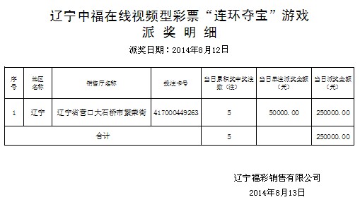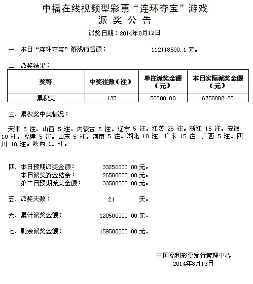 中福在线“连环夺宝”游戏派奖公告8月12日