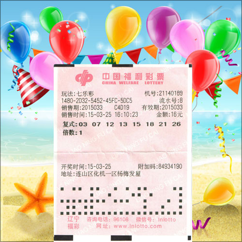2015年3月25日晚,中国福利彩票七乐彩游戏进行第2015033期开奖。当期七乐彩头奖共开出3注,单注奖金为52万余元。经检索,辽宁省葫芦岛市连山区化机一区第189号投注站中出唯一一注头等奖。销售时间为2015年3月25日16点10分23秒,投注金额为16元,流水号8。且因为投注方式为自选复式,除获得一注头等奖外,还额外收货7注三等奖,总计揽获奖金535,650元。