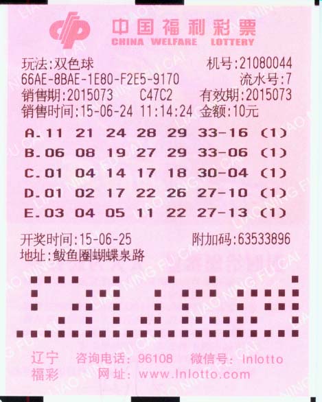 6月25日晚,中国福利彩票双色球玩法第2015073期进行开奖,开出红球号码01、02、17、22、26、27,蓝球号码为04。当期全国双色球玩法头奖开出5注,单注奖金809万元;二等奖开出103注,单注奖金18.7万元。在此次开奖中,营口市位于鲅鱼圈蝴蝶泉路附近第44号投注站传出中奖喜讯,该站一位彩民中得当期二等奖1注。26号上午,中奖彩民刘先生(化名)在其朋友的陪同下,现身市福彩中心办理了兑奖。
