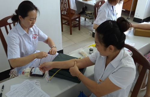 尽管当天上午烈日高照,但是难以阻挡员工们献血的热情,大家早早来到市区血站中心,按照献血流程有条不紊地进行着。