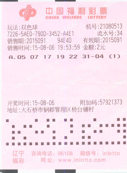 8月6日晚,中国福利彩票双色球玩法第2015091期进行开奖。当期开出红球号码05、07、17、19、22、31,蓝球号码为11。在此次开奖中,营口市位于大石桥钢都管理区桥台铺村第513号投注站传出中奖喜讯,该站一位彩民中得当期二等奖1注,喜获奖金19.4万元。10号一大早,中奖彩民林先生(化名)在家人的陪同下,到市福彩中心办理兑奖手续。