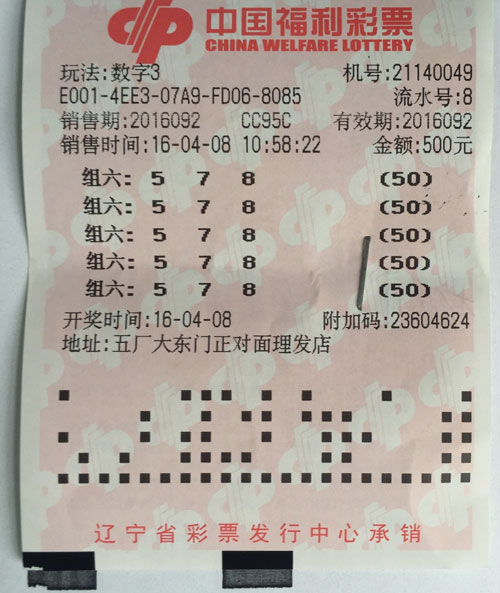 这个幸运数字在两年前中过一次大奖,那次得到奖金26万元。2年后的今天,林夕想着中过奖的那组数字估计又能中奖了。于是,他来到位于葫芦岛五厂大桥下面的一家福彩投注站,这个投注站中过3个双色球一等奖。