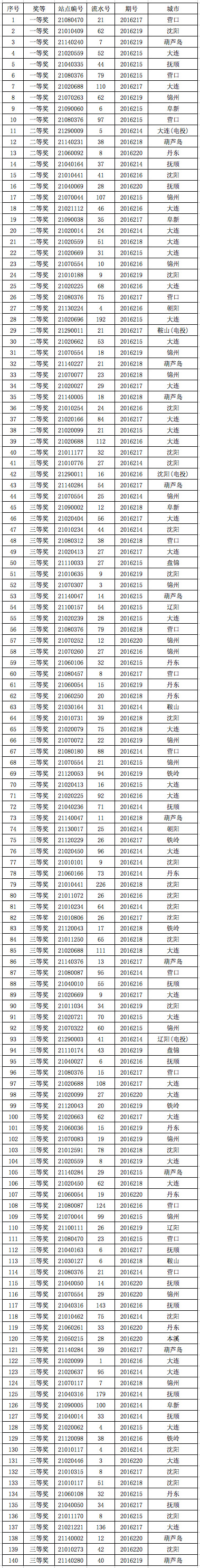 2016年8月17日18时,辽宁福彩”玩福彩3D,赢快乐好礼” 促销回馈活动第五周抽奖在辽宁省彩票发行中心进行。本次抽奖共产生幸运者140名,其中:一等奖10名,奖品惠普笔记本电脑;二等奖30名,奖品飞利浦电动剃须刀;三等奖100名,奖品飞利浦蓝牙迷你音响。抽奖结果如下: