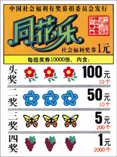 1988年由香港印制的“同花乐”,为第一张即开型揭开式福利彩票。
