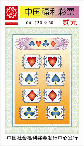 “趣味扑克”系列中的“绿团花图”,是第一张冠名“中国福利彩票”的福利彩票