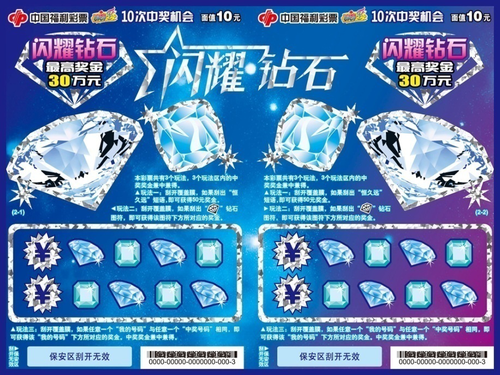 2017年2月,又推出了“闪耀钻石”系列彩票,这是国内第一款将烫金工艺应用到票面的彩票品种。