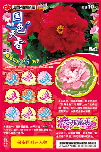 2017年3月底, “国色天香”福利彩票上市,这是国内首款全票面带香味的彩票,轻轻闻去,一股清香飘然而至。“国色天香”彩票的上市销售,在即开票历史写下了浓墨重彩的一笔。