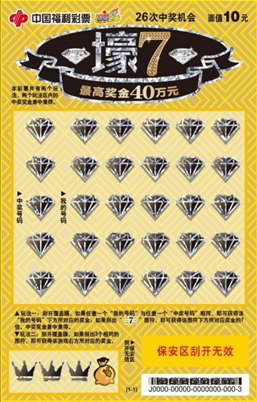 “壕7”彩票以土豪金为底色,票面上再搭配闪耀夺目的钻石、皇冠等元素,让整张彩票显得雍容华丽,贵气十足!如果你是一个对颜值有要求,对品质有要求的人,千万不要错过“壕7”!