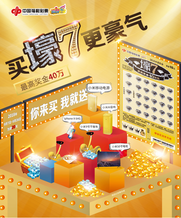 中国福彩新游戏“壕7”在辽宁地区上市啦,上市之初更有抽奖活动等着您,2018年9月7日至9月26日,苹果手机、小米电视、小米平衡车、小米智能蓝牙音箱、小米移动电源等您来拿!