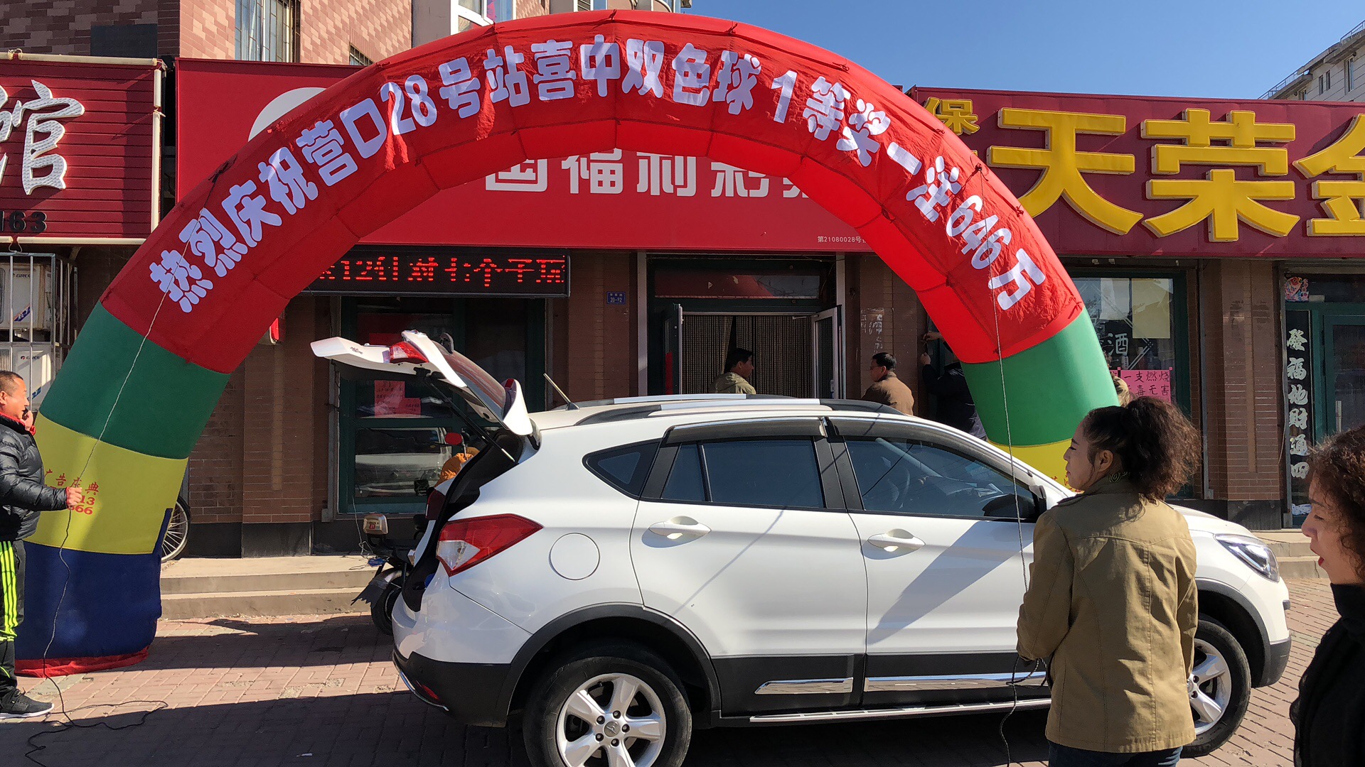 双色球646万大奖的中出轰动了滨城彩市,同时也让作为大奖“诞生地”的28号投注站热闹了起来。站主在得知自家站点中出大奖的喜讯后,一大早就在投注站门前竖立了彩虹门,许多彩民在看到大奖喜讯后都想沾沾喜气,便纷纷前来购彩,一时间投注站内人声鼎沸,掀起了新一轮购彩热潮!