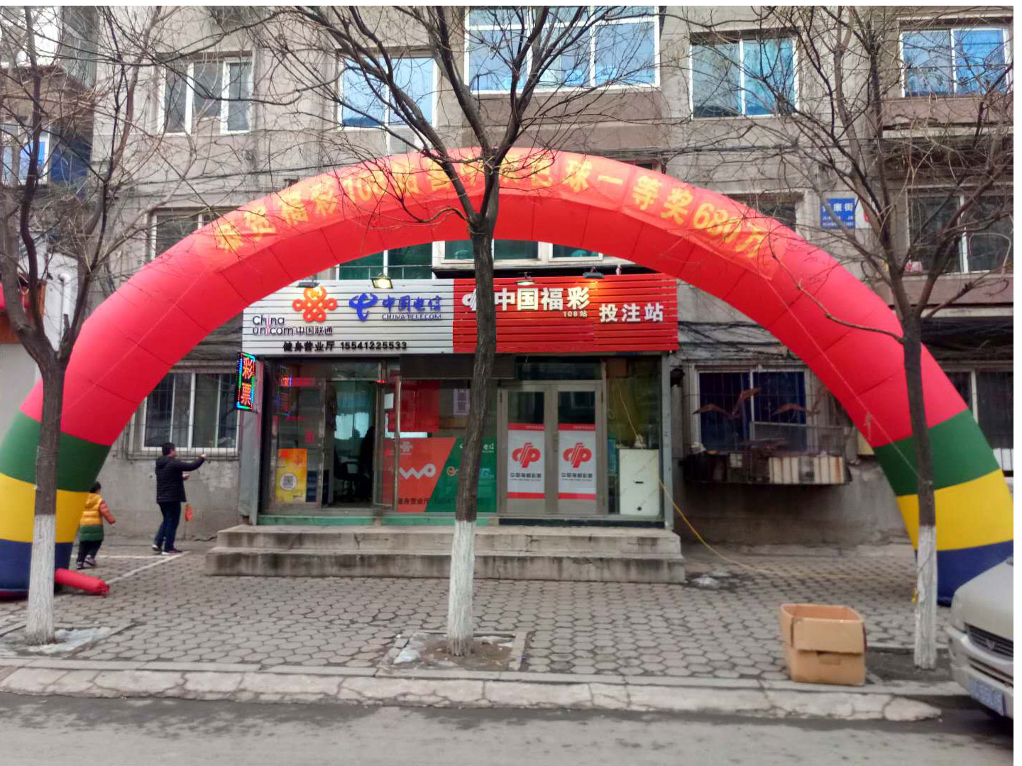 12月21日一大早,鞍山市福利彩票发行中心工作人员就来到福彩108号彩票站,给彩票站送去了拱门和中奖喜报,与投注站共同庆祝这注大奖的产生。元旦将至,又缝大奖,站里一派喜气洋洋,大红色的拱门更增添了喜庆的气氛,周围的商家和邻居也都前来围观。