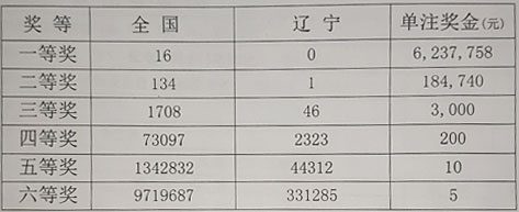 当期辽宁喜中1注二等奖,出自鞍山市258号投注站,单注奖金184,740元。