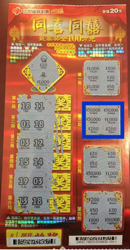 进入2020年,大连福彩可谓是捷报频传,在新年之后的5期双色球开奖中,大连共中得8注二等奖。而刮刮乐玩法也为新年添喜,在1月13日给大连彩民送出了开年第一喜,80后李先生(化名)刮出了刮刮乐“同喜同囍”二等奖,奖金50000元。