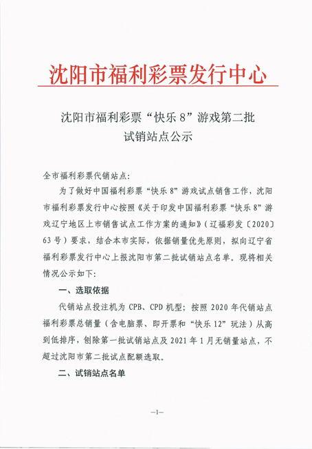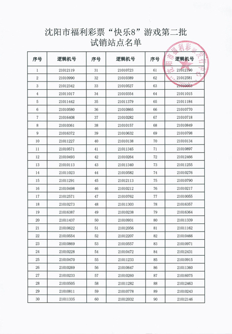 沈阳福利“快乐8”游戏第二批试销站点公示