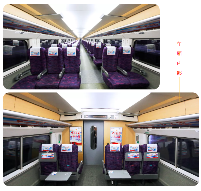 车厢内部,同样的视觉元素以及“扶老、助残、救孤、济困”的发行宗旨,出现在头枕巾上、小桌板上、行李架上、推拉门上,为旅客们营造了公益的氛围,倡导公众参与公益、支持公益,关注、关爱更多需要帮助的人。