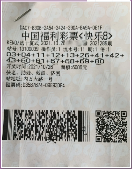 好运接力,大奖来袭!10月26日,福彩快乐8第2021285期开奖,全国中出14注“选十中十”,我省邯郸市大名县万大路13100039号站20多位购彩者合买一张15码“选十”复式票,一举拿下其中11注,除此之外,还中出“选十中九”220注、“选十中八”990注、“选十中七”1320注、“选十中六”462注,总奖金达5765.9910万元。