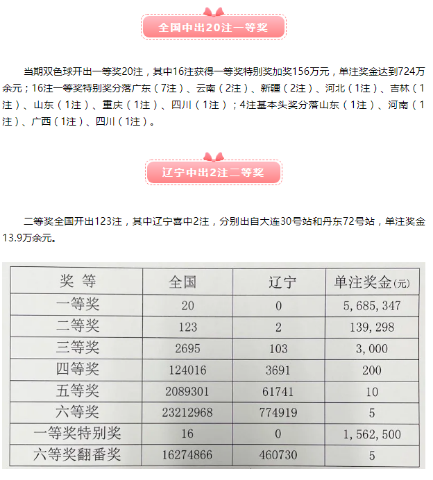 双色球第2021138期:全国开出20注头奖 其中16注特别奖