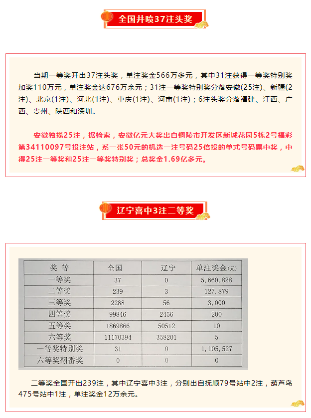 双色球第2021150期:派奖收官!安徽爆双色球1.69亿巨奖