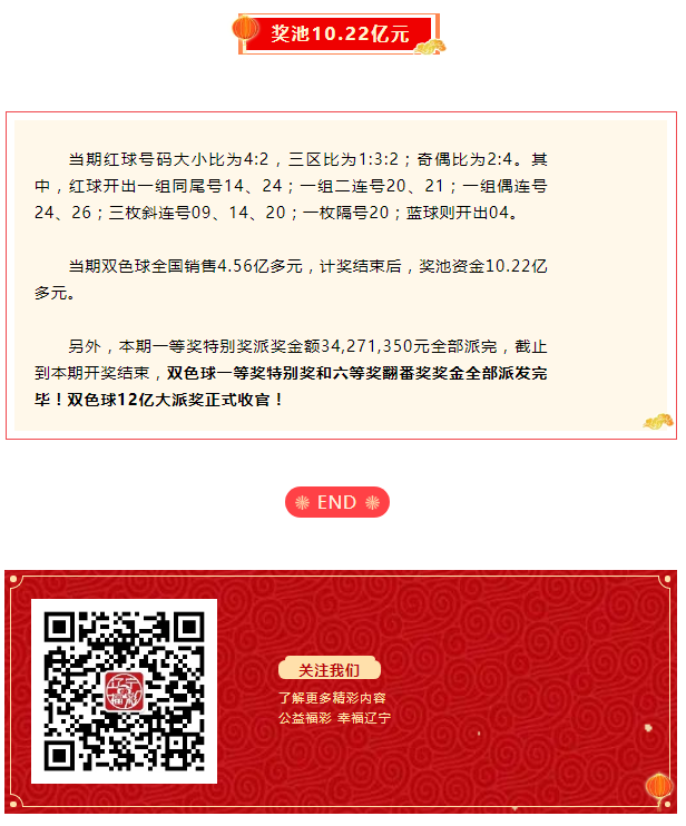 12月30日,中国福利彩票双色球游戏第2021150期开奖,这是今年双色球12亿大派奖的最后一期。当期红球开奖号码为:09、14、20、21、24 、26,蓝球为04。